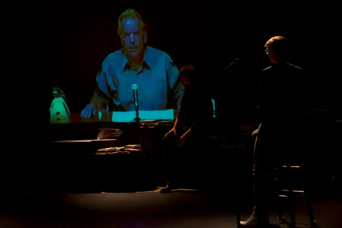 Somewhere around the middle of the show Jill Anna Ponasik is performing bits from Gray’s 1997 show Gray’s Anatomy. She’s speaking in Spalding’s words talking about meeting a blurry Richard Nixon and the right aesthetic finally jostles me. Ponasik’s crisp comic precision feels a million miles away from Gray’s voice...but it works. She’s telling a story about his life, but it reflects into her...and there’s an aesthetic parallax in that moment that jostles everything together for me.